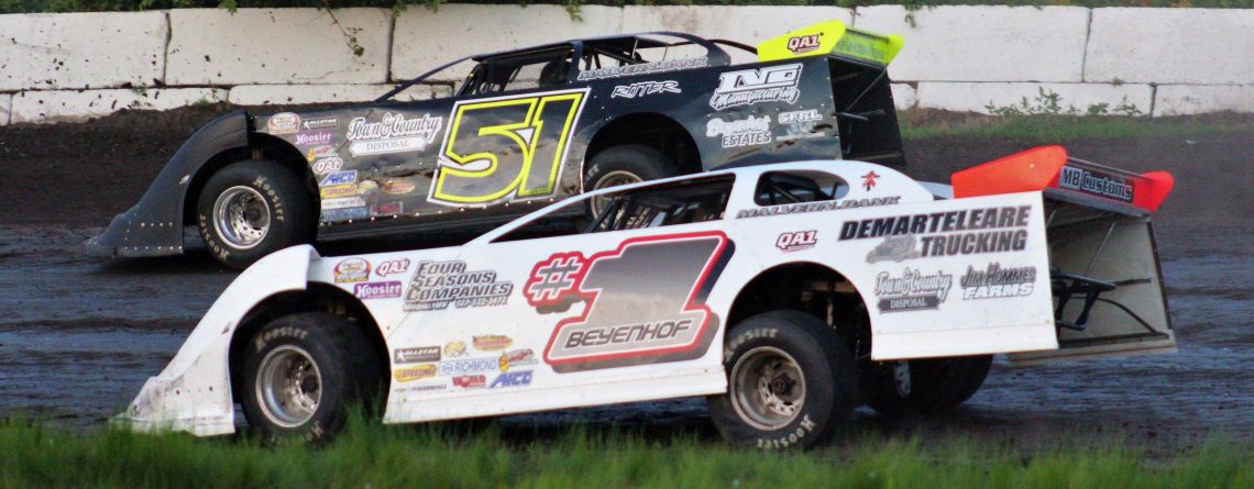 Sponsors on the #1 car are: Four Seasons Companies, Todd’s Beer Cave, LVO Mfg., Beyenhof Estates, Demarteleare Trucking, Jim Hommes Farms, Town & Country Disposal, Fastert Trucking, and Heitritter Graphix. The car is owned by Brad & Trudy Beyenhof.