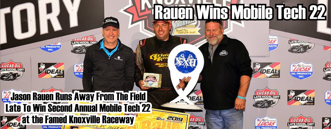 Leonard brought the field back to the green flag for a quick sprint to the checkered as the lap were winding down. Jason Rauen, who restarted 3rd, rocketed by both Leonard and Aikey on the restart to grab the top spot. Rauen then checked out as the battle was on for 2nd as Tyler Bruening and his number 16 Capital chassis had come to life in the late stages of the race. Bruening soon powered his way by Leonard and Aikey and now set his sights on the 98 of Rauen. Bruening ran out of laps to catch Rauen allowing Rauen to hold on and grab the win in the second annual Mobile Tech 22 at Knoxville. Bruening came home 2nd, Josh Leonard was the highest finishing MBSLMR regular in 3rd, Jeff Aikey finished 4th, and last years winner Tad Pospisil came home with a 5th place finish. The hard charger of the race was Josh Krug, Krug ran up from his 25th place starting spot to finish 10th. Chris Spieker also mounted a serious charge through the field after starting 30th, Spieker worked his way up to 15th during the 22-lap feature.